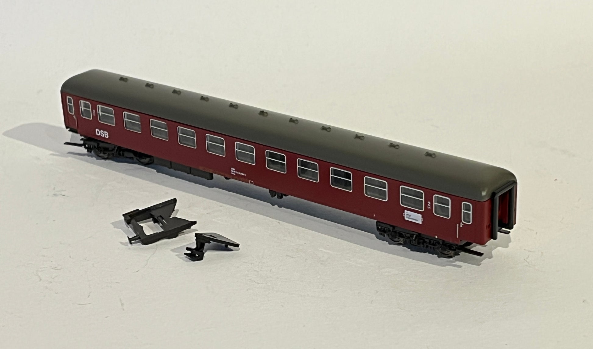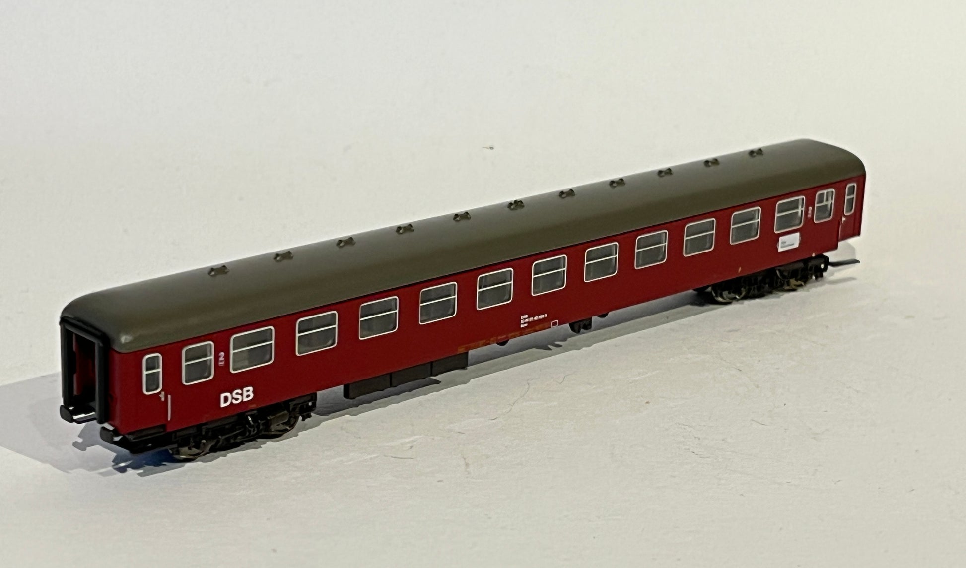 DSB-Wagen 2. Klasse Liegewagen, Typ Bcm, jeweils 4-achsig, rot.