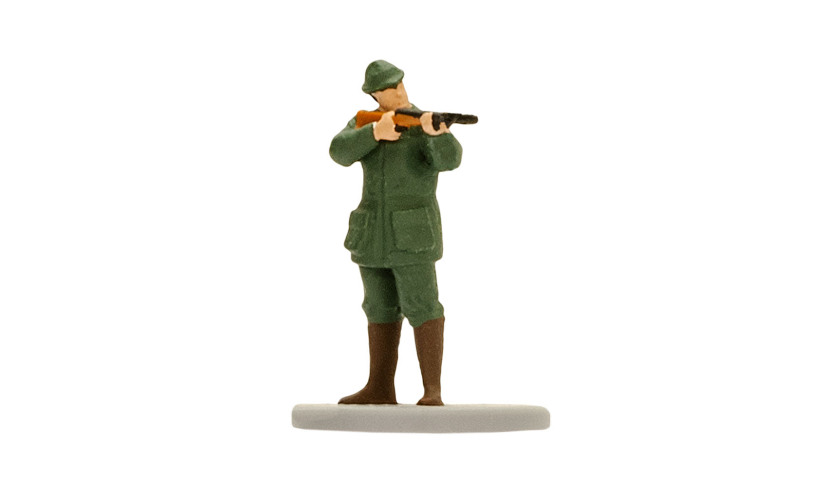 Der Jäger pirscht sich mit angelegtem Gewehr durch Wälder, Felder und Wiesen. Die Mündungsfeuer werden durch eine in unregelmäßigen Abständen aufleuchtende Mikro-LED simuliert. Das passende Soundmodul 5574 erzeugt den entsprechenden Mündungsknall. Einbautiefe: 39 mm.