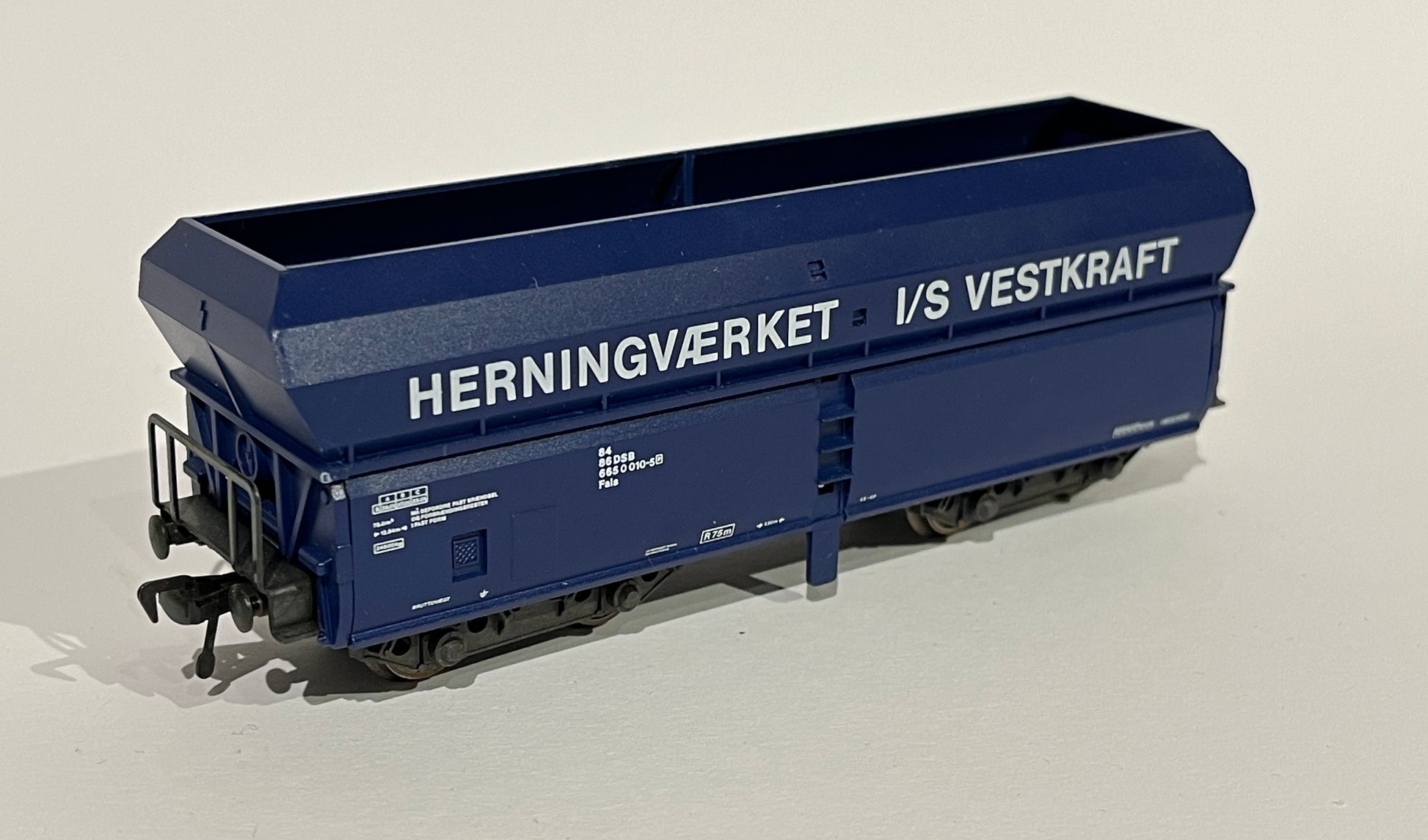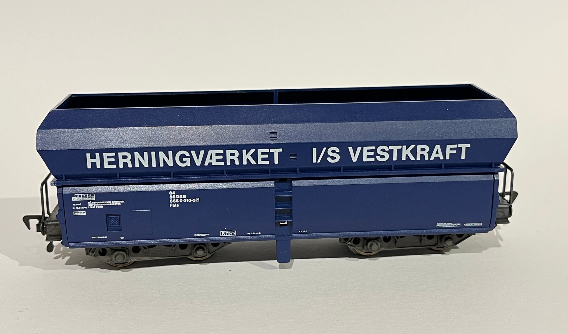 Freight wagon marked HERNINGVÄRKET - I/S VESTKRAFT. A detailed DSB model suitable for enhancing your industrial-themed railway layouts.