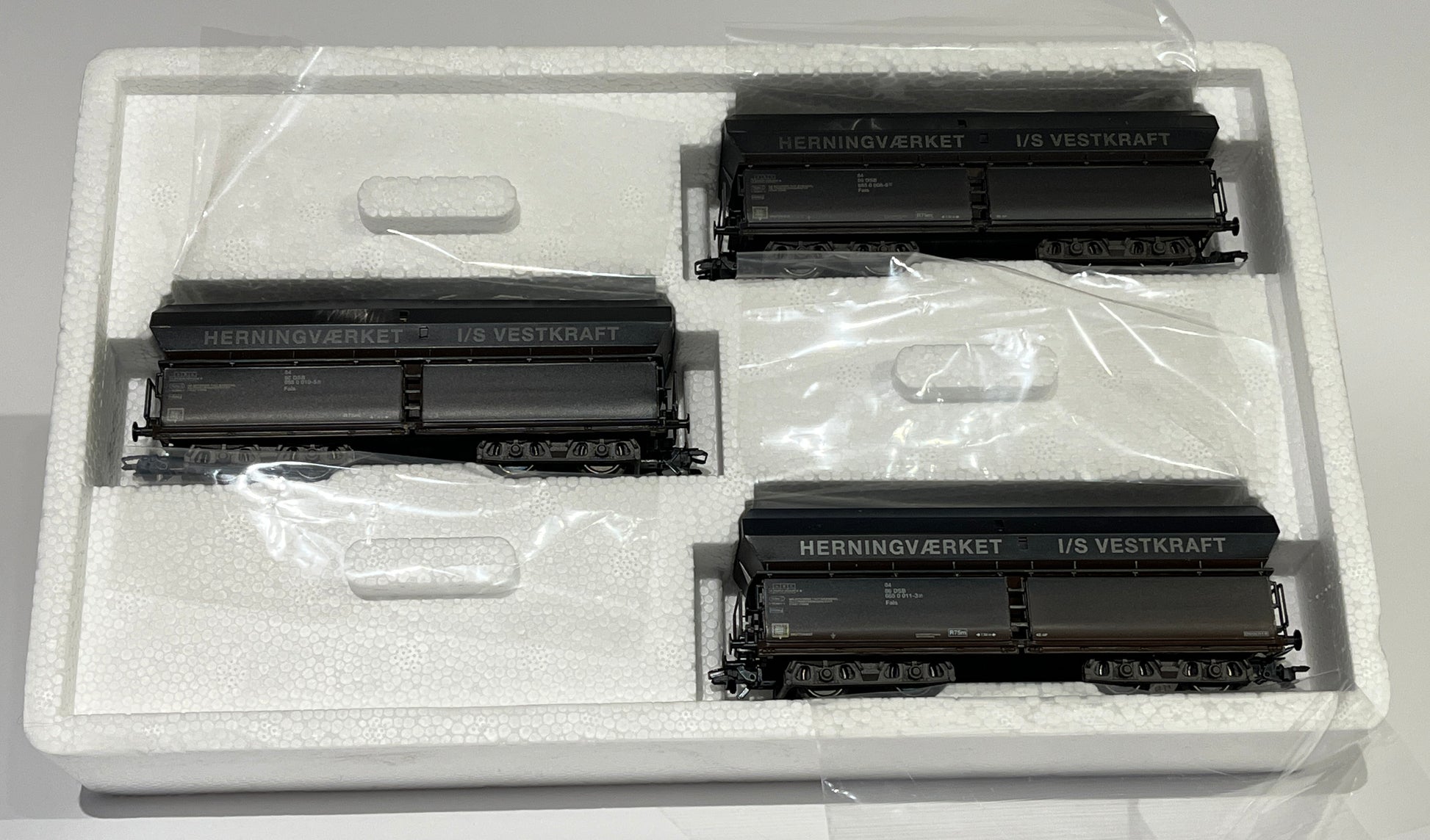 DSB Self-unloading coal wagon set. 3 wagons. Herningværket.