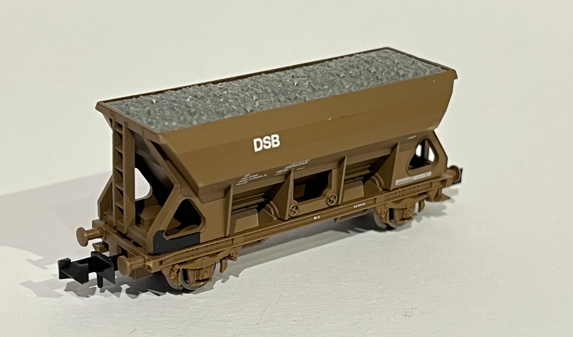 DSB Self-unloading wagon, type Fccs, 2-axle, brown, load: Gravel.