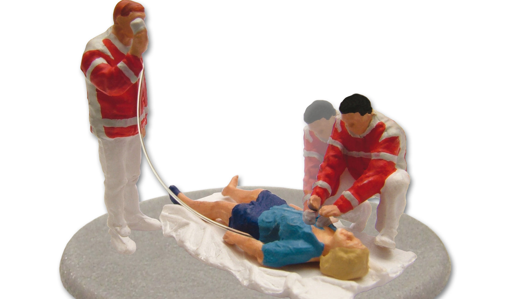 Emergency action. Accident ambulance doing reanimation. With accessories and underfloor drive unit. Mounting depth: 39 mm.